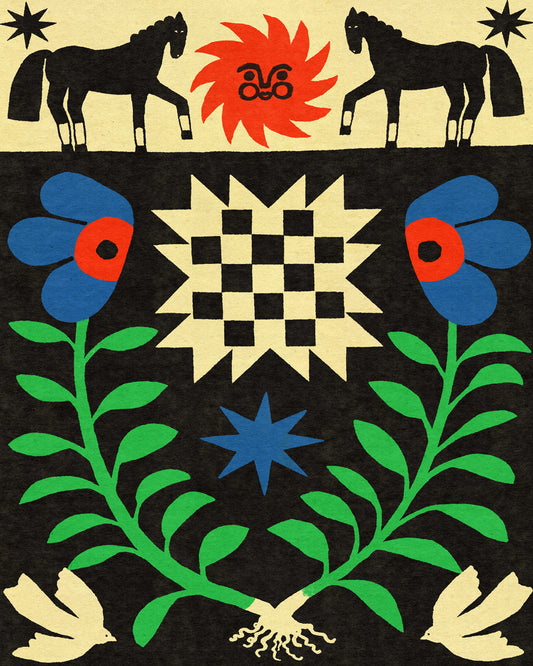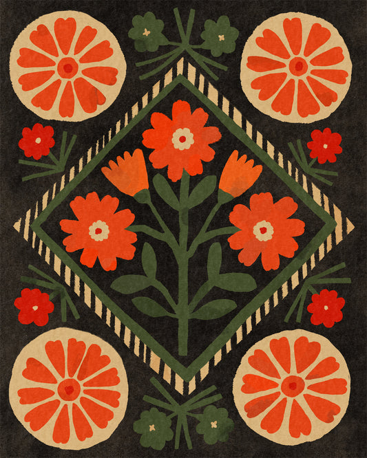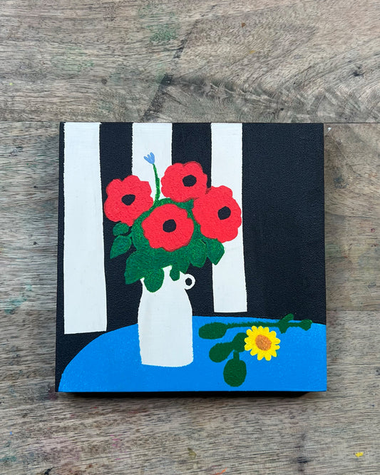 Poppies and Stripes – 6x6 Acrylic Painting on Wood Panel