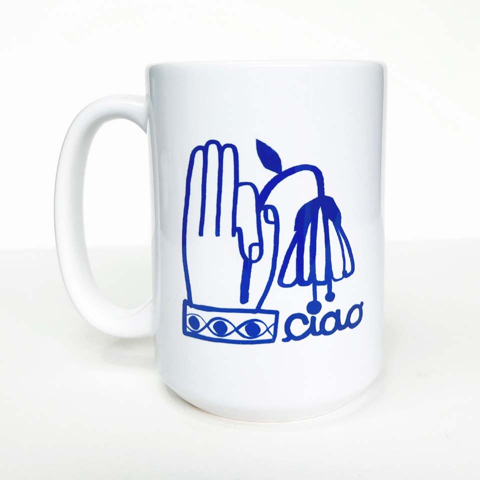 Ciao! Buongiorno! A large mug for your morning coffee or tea. The drawing is vibrant and holds up perfectly in the dishwasher.