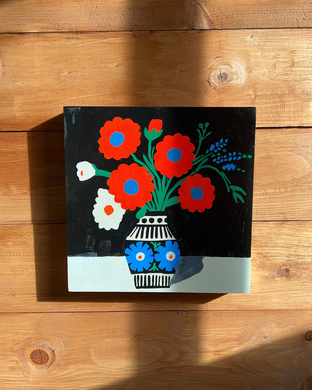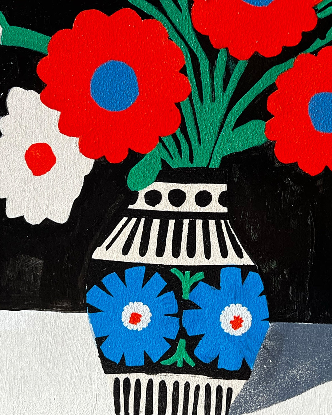 - Timeless Folk-Art Feel: A bold, contemporary take on the classic floral still life—ideal for collectors who love graphic color and modern folk symbolism.