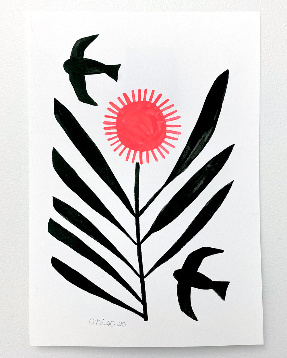 This original painting is 7in X 10in. It’s painted with gouache on thick Canson, acid free, paper. Signed and dated on the front. These original paintings are shipped in an envelope enforced with cardboard. Currently I’m only shipping this painting to the US. If your outside the US and would like to purchase an original, please email me and we can make arrangements.